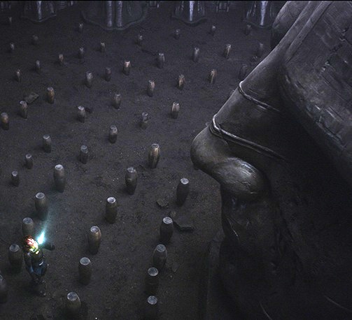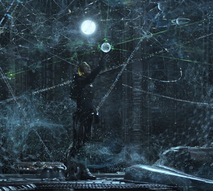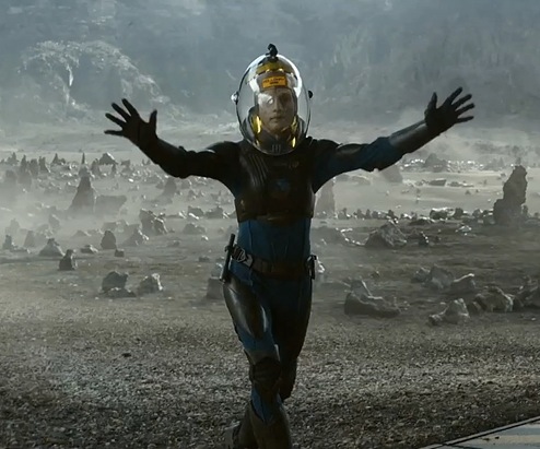 In addition to all of the whiz-bang excitement of Friedrich Nietzsche (what? It’s just me?) and the rollercoaster thrill of Christian symbolism (it’s just me) Prometheus is often tense and creepy, surprisingly funny at moments, breathtakingly beautiful to look at, visually “poetic” in ways that filmgoers rarely get the chance to see in big-budget mainstream films. Whether it’s the haunting vision of ancient digitized Engineer “ghosts” running away from some unseen threat or David’s discovery of the Engineers’ star charts or the team’s first looks at the terraforming dome or their use of the “mapping tech,” or the first foray into the Ampule Room, Prometheus is chockablock with dynamic, evocative imagery captured with technical prowess and aesthetic finesse. It features gorgeous, practically-created environments – the kind that rarely gets built anymore, let alone showcased the way that Scott showcases these. Another filmmaker would have created the Ampule Room using CG-augmented sets. And it would have been a massive mistake. What we get instead is a real, tangible environment that reminds me of what Anton Furst or Nazi architect Albert Speer might have created if they were alien Engineers.