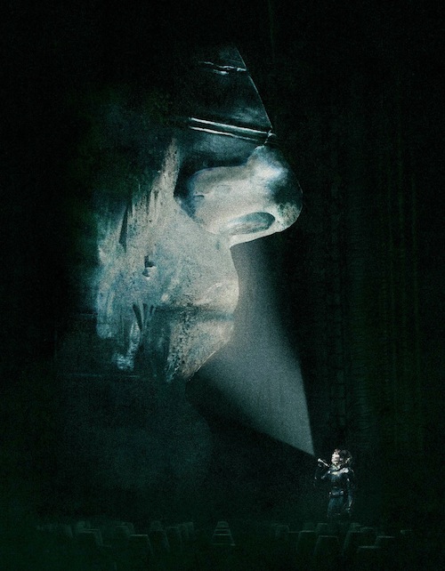 The Alien film series is centered on a dark mirror of this sacrifice; the notion of death-as-birth, creation through destruction. Whether it be the “birth” of the first Xenomorph via John Hurt in Scott’s original, Ridley’s role as surrogate mother in Aliens and the Queen Xenomorph’s role as Mother to her monstrous brood, Ripley’s “impregnation” in Alien 3, Ripley’s unfortunate, albino lovechild in Alien:Resurrection, or Shaw’s horrifying caesarian birthing sequence in Prometheus, death-yields-horrifying-life is the truest, most consistent “life cycle” in the Alien series.  Bookended by scenes of godlike Engineers dying in the act of bringing forth new life, Prometheus reflects that death-birth cycle in numerous ways, but introduces a purposeful and ominous ambiguity, asking the audience to reflect on the many definitions of “sacrifice.”