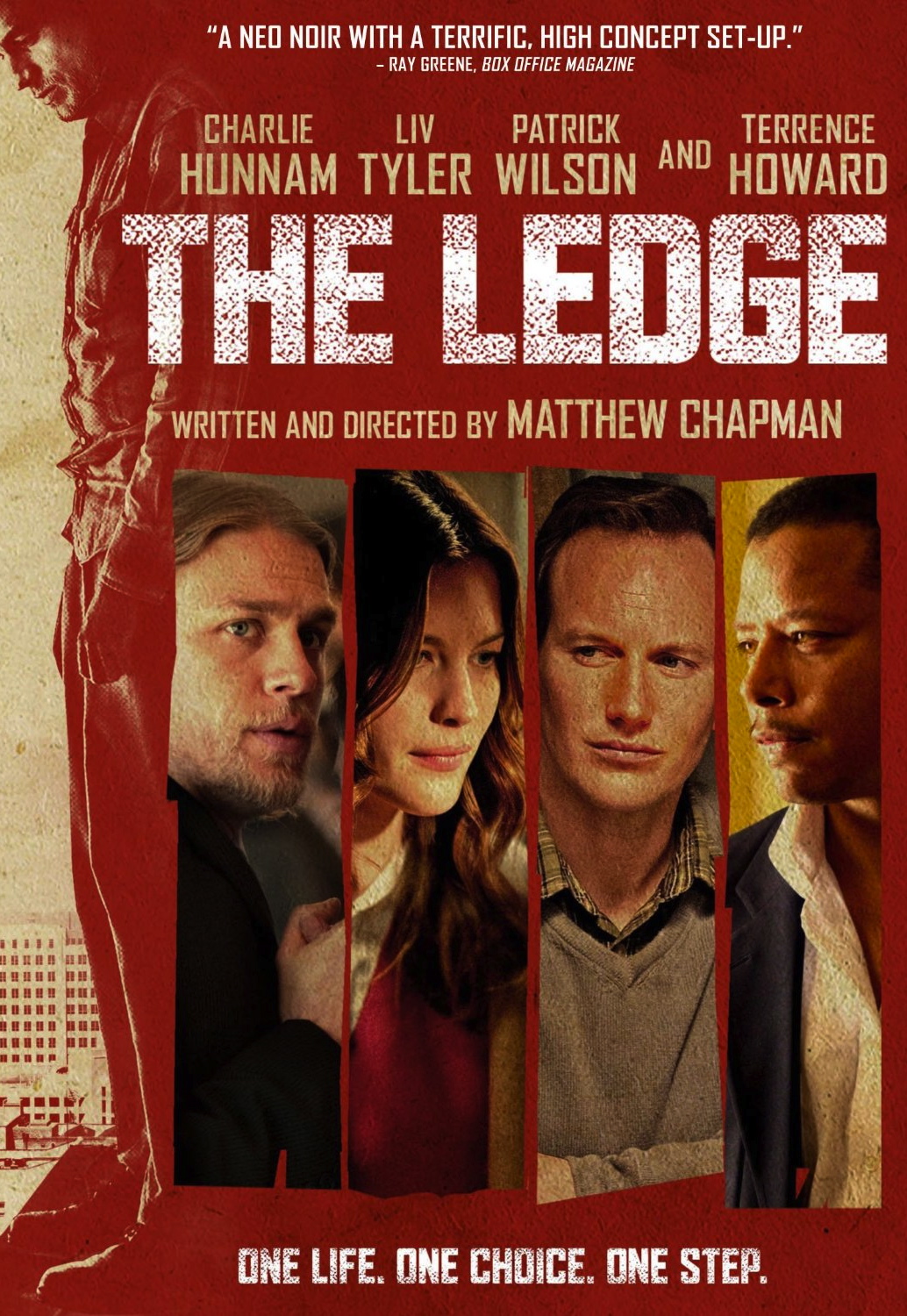But let’s backup. No psuedo-noir would start at the beginning. What would be left to investigate? Like classic noirs, Double Indemnity or Sunset Blvd., except not nearly as good, The Ledge begins right before our narrator dies. Detective Hollis Lucetti (Howard), a cop with a decent record of talking people out of suicide, and fresh off finding out that his kids are not his own, attempts to talk Gavin out of jumping off a building, instilling confidence in Gavin by consistently sounding like he’s about to burst into tears.