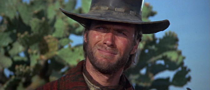 Eastwood is absolutely toying a bit with his Man With No Name persona here. While FAR less laconic, virtually all of the trademarks are in place. The ‘do, a serape-like vest, the cigarillos, talking through his teeth, “his squint-eyed grin and stubbled chin”…sorry, had a Joey Belladonna moment there. Hell, our introduction to the man comes in the form of him riding in silhouette with the sun behind him to a wonderful Ennio Morricone score. If you truly wanted to get fanboyish about it, one could even view this as a semi-sequel to the Dollars films. After all, we really don’t know what happened to the nameless one after the events of For A Few Dollars More. The end of that film saw our beloved gunslinger becoming even more “human” and merely a spectator to the final showdown, as opposed to an active participant. Many always point towards Unforgiven as the only future for such a character, but I disagree. Leone made the character slightly more compassionate and less selfish as the trilogy progressed chronologically. With that in mind, it’s hard to see him ending up like Will Munny. Regardless, Clint (this time named “Hogan”) is still a greedy sarcastic bastard at times in this.