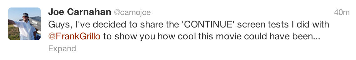 Joe Carnahan’s twitter feed is quickly becoming the very best place for Joe Carnahan news, especially about his project that don’t come together!
