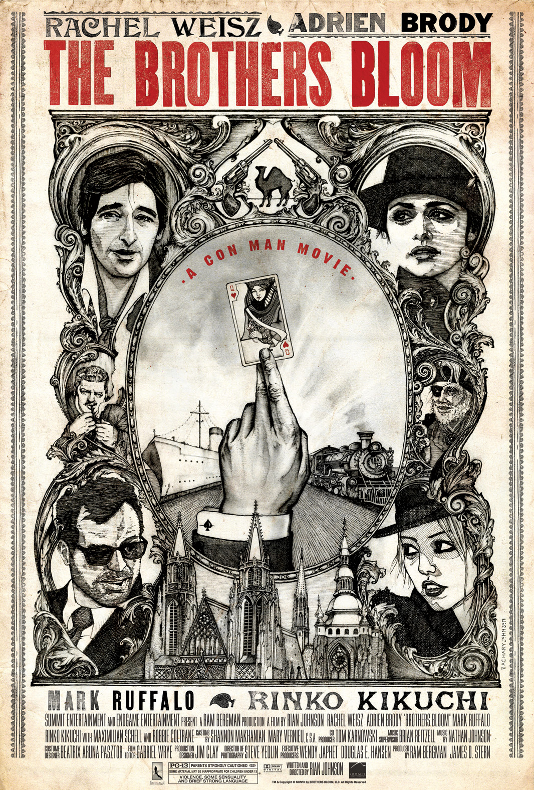 Even though Looper director Rian Johnson’s production have steadily grown in scale, he’s kept a close family of collaborators around him that includes folks like his composer, Nathan Johnson. As it happens, Nathan’s brother Zach is a talented visual artist and has produced illustrated posters for each of Rian Johnson’s films from Brick on, and his latest is no less awesome than the others. Check it out: