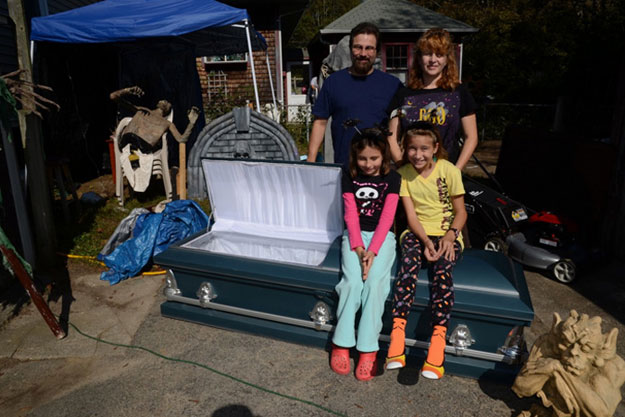 Whether or not Victor Bariteau is the most interesting subject in the film is debatable, but he is the one that Stephenson is clearly most taken with. Victor’s style of home haunting is a rather seamless follow-up for Stephenson from movie making. Like a passionate filmmaker, Victor is consumed by his vision for his home haunt, and in turn consumes his family and friends. He is a taskmaster, and as Halloween approaches, a bit of a slave-driver. Yet no one ever turns their back on him because they believe in his vision and want to be a part of it. It is fascinating seeing the way that his wife and two daughters indulge Victor, and also indulge their own passions for the project. Victor’s two young daughters don’t even go trick’r’treating, because they have the best show in town to entertain them. I just found it so inspiring seeing these unassuming suburbanites tossing themselves into such a pure form of artistic expression with no goals of fame or fortune — just a love for what they’re doing and desire for recognition from their neighbors. And the whole Bariteau clan is compelling to get to know. The break-out character from The American Scream is Victor’s oldest daughter, Catherine, who most genuinely enjoys helping her father out. We’re introduced to Catherine as she excitedly dumps out a box of mutilated Barby dolls that she created for a previous home haunt, and then tells the camera, “I hate Barbies.” I’m sure right then and there a whole generation of young male horror fans will have found a new crush.