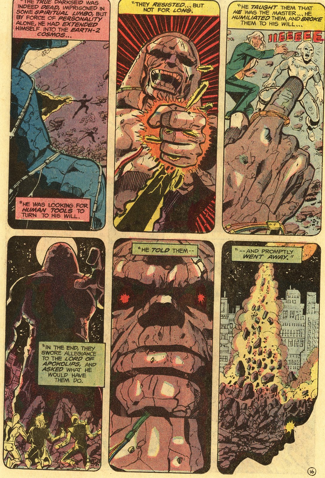 This isn’t exactly shocking, as a look at the issues shows that the arc was one of the earlier, more dramatic storylines to involve Darkseid and the New Gods. It teamed up key members of the JLA and JSA, and sent them for a first-hand visit to New Genesis and Apokolips, with Darkseid presented as a full-on interstellar Satan. A true cosmic force that had already been dispatched once, Darkseid returns here –similar to Sauron– by rematerializing out of sheer evil will.