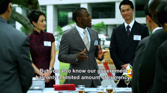 From there Roslin travels to Beijing and the film cranks up the extraneous international intrigue. This is where the film stops being boring and starts getting tortuous. The story moves back and forth from the present to 1865 Nevada, where one of Roslin’s ancestors is a railroad fatcat beating and abusing the Chinese men working for him. This is, of course, tied to the revenge murders of the present. There’s also a giant security firm involved and a land deal between South Africa and China that I couldn’t have cared less about. I’m not even sure why those lousy sub-plot matters.