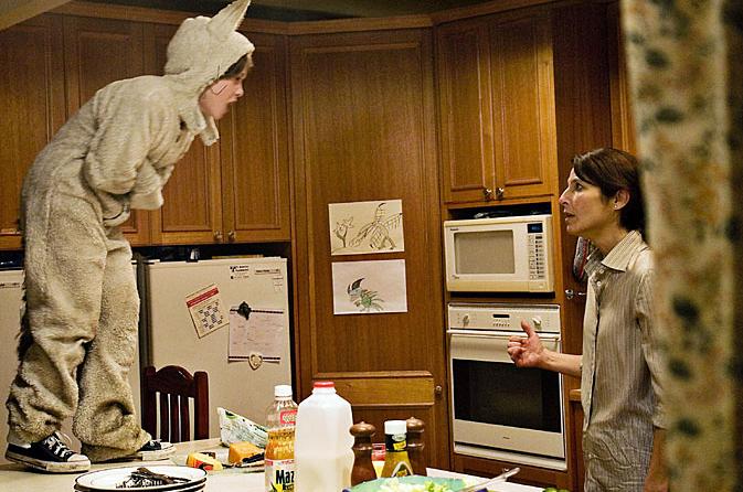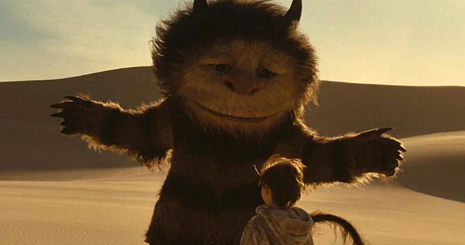 revels in capturing great leaps and bounces that seem utterly impossible, and establish that these aren’t delicate suits primped up for each shot. There’s a danger inherent and, by showing us immediately that the Wild Things are very real creatures capable of massive feats, the film tells us anything is possible. The richness does not end with the Wild Things though, as they live in a beautiful world of wood, sand, and stone. We see many different landscapes, genuinely inhabited without even a hint of a digital seam peaking in to ruin the fun. Trees burst into splinters and giant forts are erected out of thousands of branches that were clearly assembled in the very real world. CGI enhances here and there, but Where The Wild Things Are truly represents an all-time effort of actual blood-and-sweat production design. This is as good as place as any to also mention Karen O and Carter Burwell’s amazing score, which is similarly in tune with the manic and melancholy rhythm of Max, providing momentum and explosive bursts of excitement for the film. It’s another pitch-perfect layer of the craft that helps makes this a truly singular film.