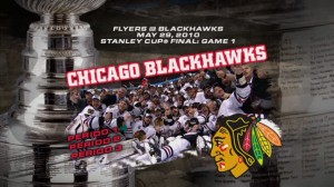 Disc four jumps all the way to Game 5 since The Flyers won Games 3 & 4 and the whole point of this box set is to show off The Blackhawks and their skill of winning. It’s a little biased, but no one really cares about losers. Anyway, The Hawks score 3 in the first while the Madhouse (who might be some of the best fans I’ve ever seen) goes absolutely wild. Seriously, I bet these guys take home teeth they find on the ice and keep them in jars.