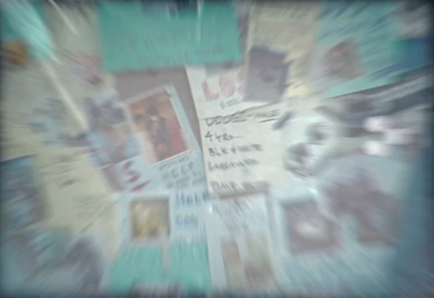 It’s also worth mentioning that the Super Bowl TV spot has been scrutinized thoroughly and the tiniest of teases have emerged in the form of some creature’s lower jaw, a date ( __mber 19th, 1962) a billboard crammed with notes (no sign of a Slusho flyer…). They come from the very end of the trailer, when the title pulls back from the camera’s lens. A couple dozen frames flash by, the three below containing discernible items. You can click to see them in full res (from the HD Apple trailer.)