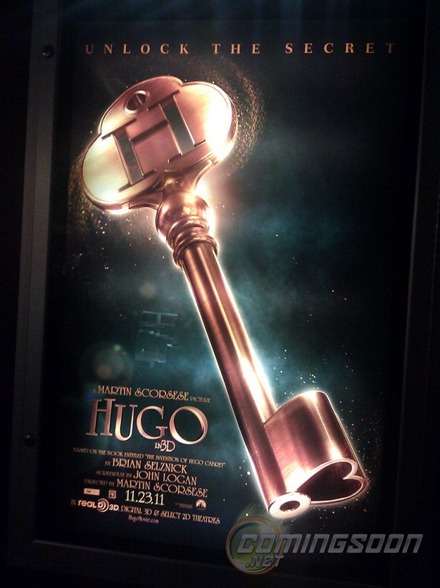 Tee hee ha.  Coming Soon has the poster for Martin Scorsese’s upcoming Hugo.  It’s a giant key.  The synopsis: Adapted from the Caldecott-winning Brian Selznick novel The Invention of Hugo Cabret, Hugo is the story of a resourceful boy who lives in a train station and teams up with a spirited young girl to solve a mystery that is based in his past and affects both of their futures. It opens in 3D and 2D on November 23rd and stars Asa Butterfield, Chloe Moretz, Sacha Baron Cohen, Ben Kingsley, Jude Law and Emily Mortimer.