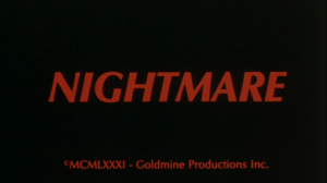Nightmare has become infamous on horror message boards for never having a proper release on disc, and now Code Red has made it available. All the stills with my attempts at humor, and even the ones with no captions are all taken directly from the “Slightly better print” on the 2nd disc. That’s the better transfer, as there are no less than 3 transfers spread over the 2 discs. There’s print damage, but for the most part, it’s all very clear.