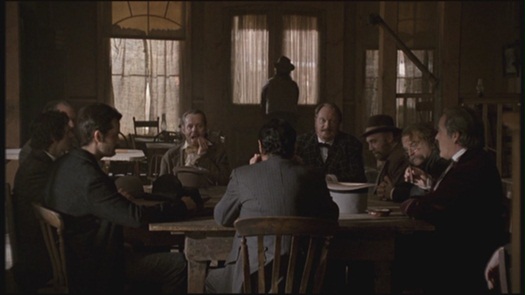 I love that. I think it illustrates a desire to bring life’s vast, messy sprawl to dramatic life without artificial contrivances, and I enjoy the way that the way the show evolves in the first season more-or-less reflects the way that the Deadwood camp is itself evolving. As the camp coalesces, so do the storylines. As the self-appointed leaders of the community band together and organize, so too do the various storylines and characters begin to organize themselves. This evolution becomes much more obvious and pronounced in season 2 (if I remember correctly), but it’s in these last episodes of the first season that this collective organization – of community and of narrative – really begins to make itself known.