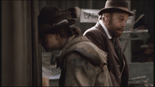The closest you can come to giving Deadwood’s first season any kind of real narrative arc is to say that it’s about the first steps in the creation and expansion of a community and/or the ways in which Law and Order clash and cooperate in a burgeoning community. But that description is (a) waaaaaaaaaaaaaaaaaaaaay more nebulous than the question of who murdered a high school girl and (b) only applicable to a portion of the various stories being told here. Maybe that’s why some folks find the show forbidding. You can’t latch onto any one thing in Deadwood and expect it to define the whole. Each part of the show’s body is in some way essential to the whole, but no one part defines the body.