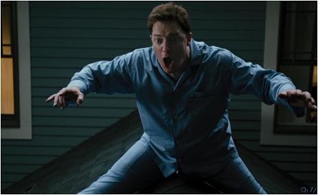 So within minutes the entire premise is firmly in place, the plot nothing more than a preordained blueprint which must be adhered to, with random physical gags and clownish reaction shots and animated animal reactions inserted to fill up dead spots in the plot like so much unfunny spackle. Fraser commits himself to this effort, willing himself to partake in any number of embarrassing and humiliating acts in order to wring what scant few drops of mirth might be found in this dusty script. Detracting from this effort however is Fraser appearing rather bloated, at times resembling a hung-over frat boy. He’s rather departed from his hale countenance seen during his run in “The Mummy” franchise.