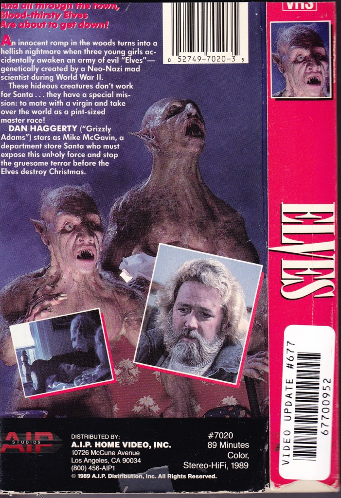 Plot: Poor Kirsten is a teenage girl in a small town who’s having a really lousy Christmas. It all starts when she and her two girlfriends travel into the woods and accidentally awaken an army of evil Elves created by a Neo-Nazi mad scientist during World War II! Now these slimy little monsters aren’t interested in helping Santa Claus make toys. No, they intend on mating with a virgin on Christmas Eve so that they can create a master race of Nazi-Elves!