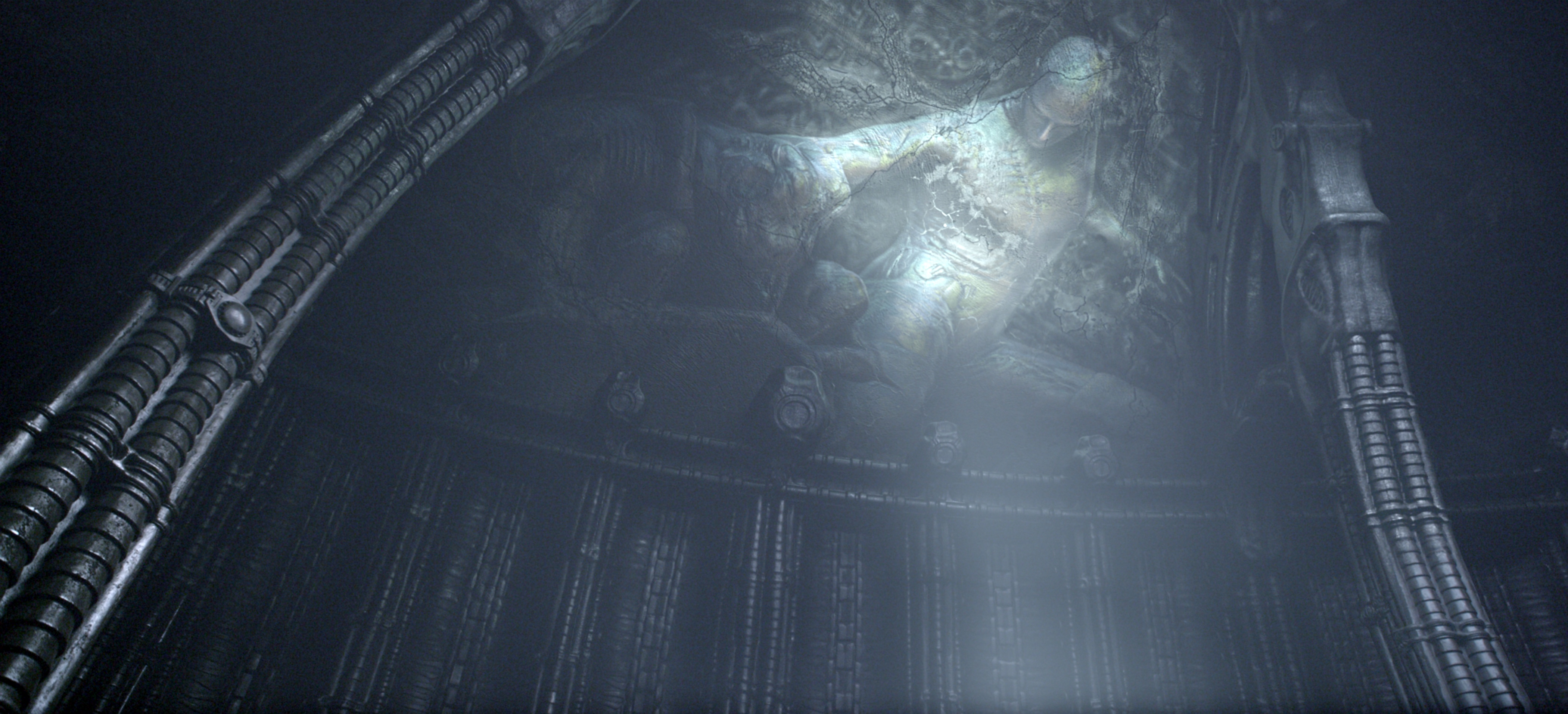 Ultimately there’s little you haven’t seen from the trailers in these pictures, but because they’re super-sized you are able to get in close and explore the details of the production design. Dig into that hologram and see what secrets it might hold, check out the details of the scary space face, and check out a pretty grotesque bit of art included on one alien wall.