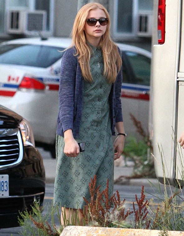 Or in this case, appropriately downtrodden and conservative beginnings. This is not a production still, so the glasses and/or coat aren’t necessarily for the character, but, regardless, here’s your new Carrie. This thing is happening.