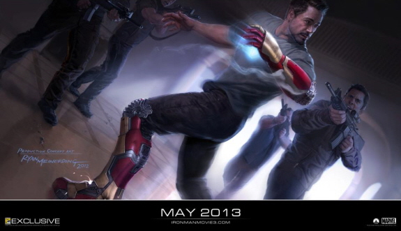 It would appear that Marvel has coolly and quietly released this neat little piece of Iron Man 3 concept art on their Avengers Facebook Page. It’s most likely our first hint of the film’s new Extremis armor – a suit that interacts with a nanobot virus Tony injects himself with, making the suit and his nervous system one (because comics).