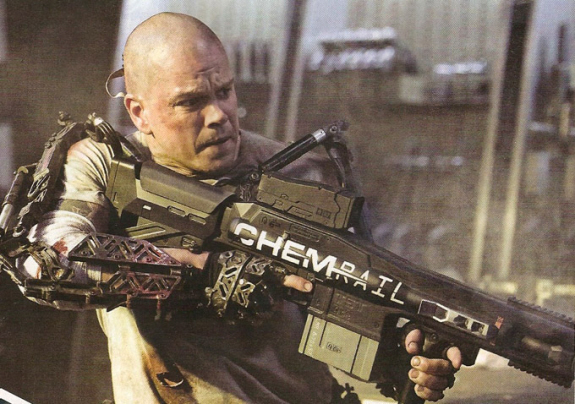 Now we’re finally learning more about his followup, Elysium (releasing March 1, 2013). If this image is any indication, we can expect some pretty intense weaponry (something District 9 also had in spades). Here we have a bald Matt Damon wielding an uber-assault riffle. Damon’s joined here by a solid cast, one that includes Jodie Foster, Diego Luna, Sharlto Copley and the never not sexy William Fichtner.